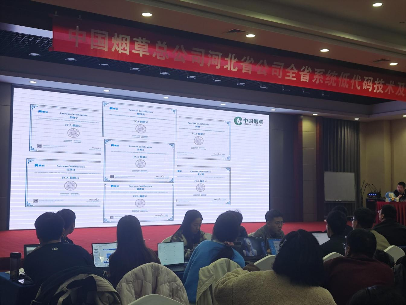 各小组迅速进入状态,分工协作、头脑风暴,将学到的理论知识与烟草实际业务场景深度融合。有的聚焦基层业务痛点,有的瞄准效率提升方向,运用低代码开发方法论反复打磨方案,最终成功搭建出一批适配业务需求、兼具创新性与实用性的低代码应用原型。培训结束后,全体学员均顺利通过考核,拿下FCA-简道云初级认证,为河北烟草储备了首批低代码专业人才!
