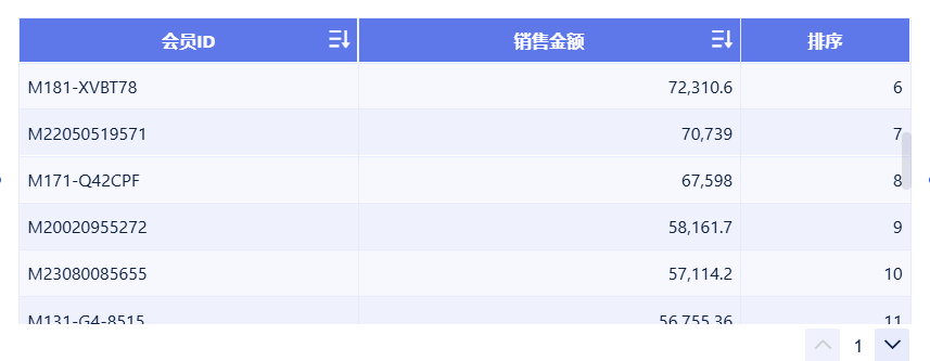 4、 明细图:展示每个品带来在销售额,top靠前的用户,产品销售额排名表。