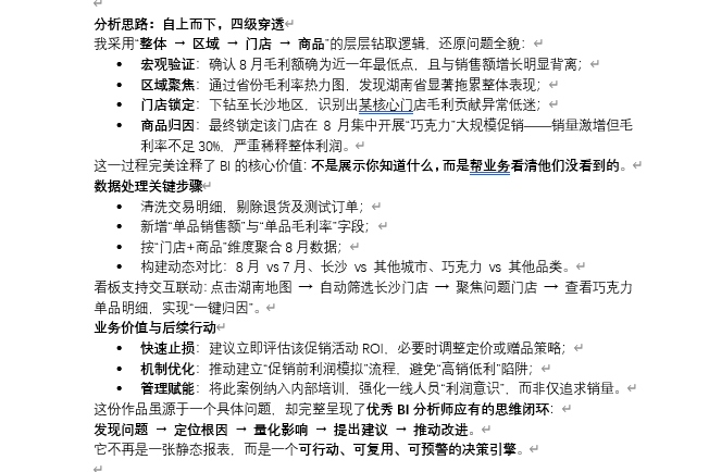本次长沙巧克力案例实战是我认知跃迁的关键节点。从宏观趋势异常,到最终锁定单一门店单一商品,整个过程让我体会到:真正的分析不是堆砌图表,而是构建逻辑链条。