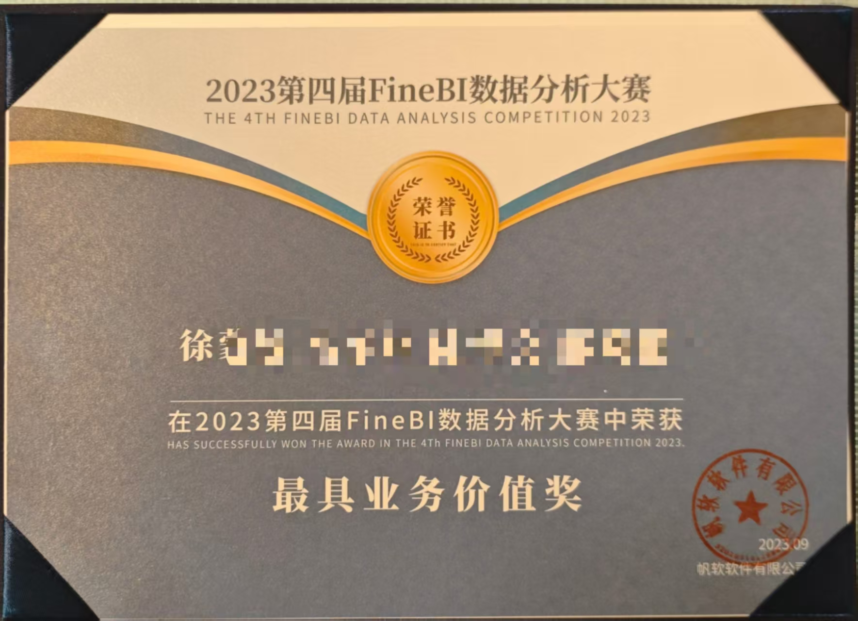 最终,我们的作品荣获了“最具业务价值奖”,全场第9。这个奖项对我本人是极大的鼓励,它肯定了我将FineBI与业务场景紧密结合的思路。