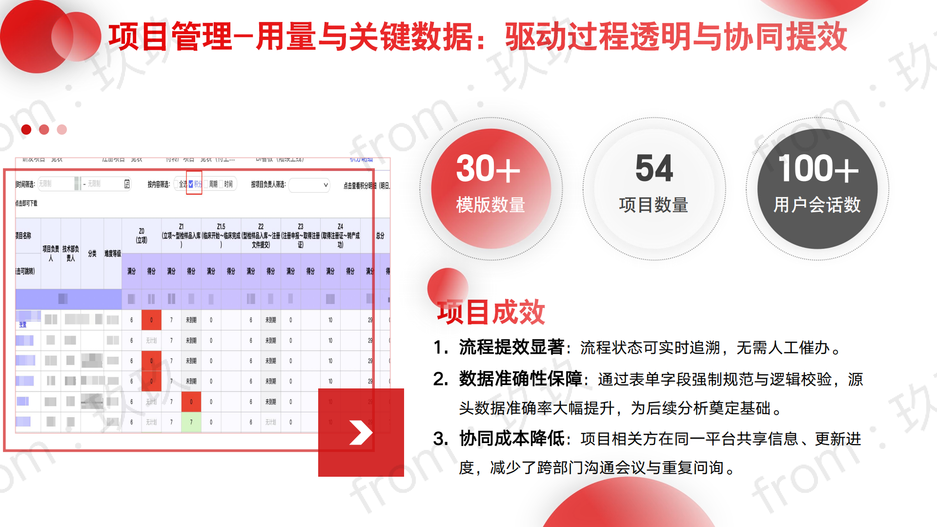 l流程线上化固化:用FR开发了 30 + 项目管理模板,涵盖研发周报、注册审批、转产追踪等场景,每个项目的卡点部门、进度状态都能在线标注,提交后自动推送对应负责人;