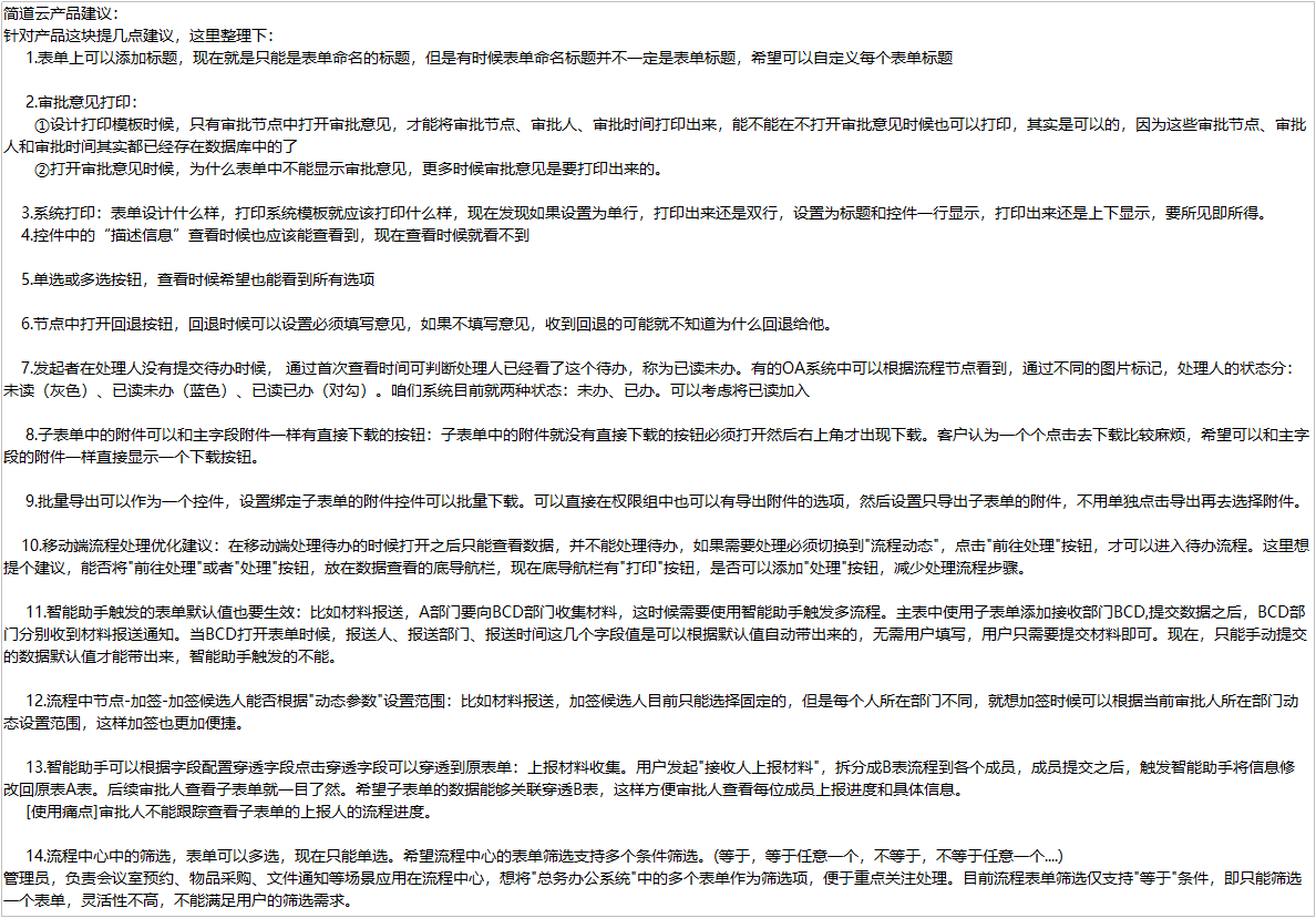 那在使用简道云过程中,也提出了一些产品意见,有的提在帆软简道云服务群里或有的写了产品需求。有这方面需求先提上,能不能被考虑在内优化另说。至少先说出来,才能知道你有这方面的诉求。