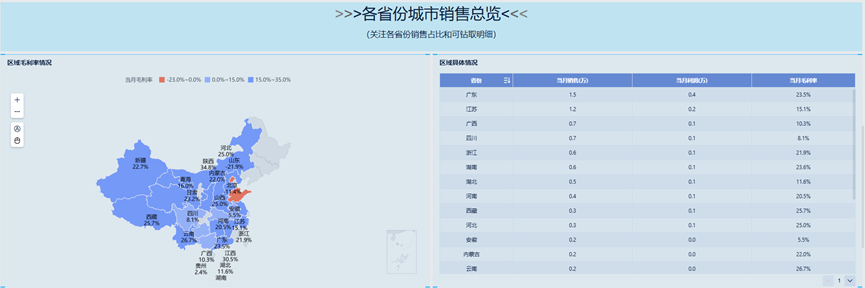 1、 地图-省份城市的毛利率情况