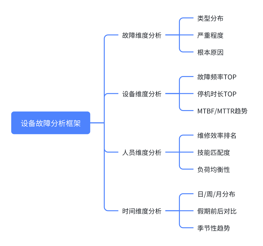 核心分析框架:采用"故障维度-设备维度-人员维度-时间维度"的四维分析模型,构建从宏观到微观的分析路径: