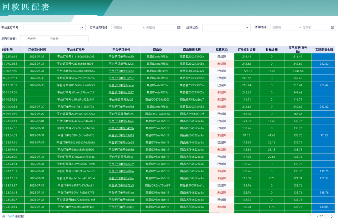 当你点击某一个子订单号时,能看到它对应的订单信息、售后记录、退货情况、结算状态,而不是再去多个后台来回查,这一步,本身就已经解决了 80% 的“对不清”。