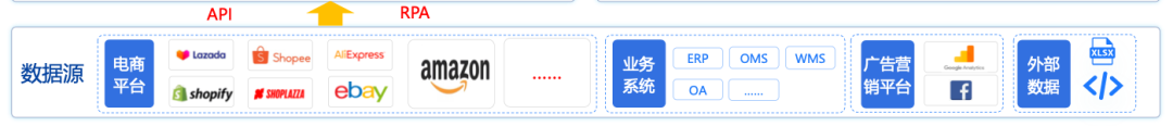 数据中台首先要解决的是“把数据全部接进来”。跨境业务涉及的平台多、语言多、标准多,因此数据采集必须覆盖: