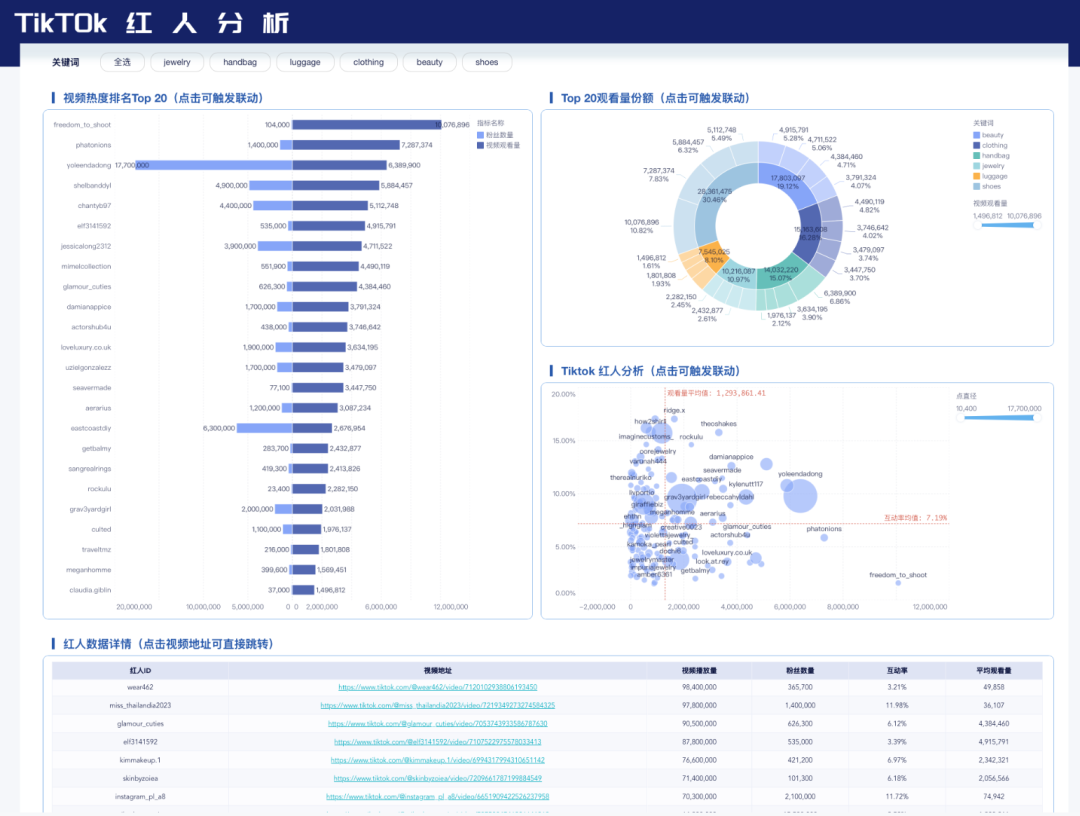 - 通过跟踪红人发布的推广内容的表现,如视频播放量、点击率、引导的流量和销售转化率等,评估合作效果。根据数据,优化后续合作策略。
