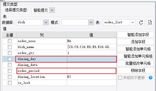 横向的三行在填报时都对应的在order_period中填入午餐或者晚餐