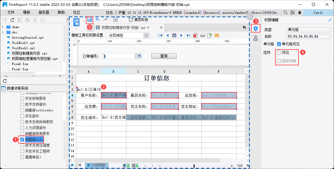 下面图片的意思就是如果登陆人的账号是 zhangshan,那么控件就会显示文本控件,这样它就可以填报。否则的话。控件是不会显示的。控件不显示那么用户是无法填报的。。(当然你也可以通过角色,或者部门去设置也可以)