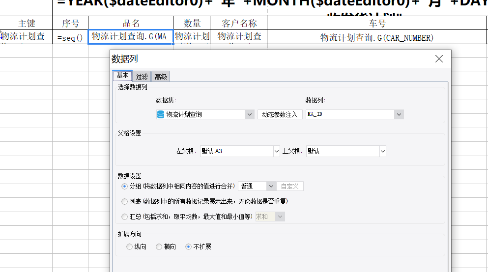 你主键不是不一样么,分组的前提是前面的字段也得是分组的,或者你把前面的字段左父格子设置成品名单元格