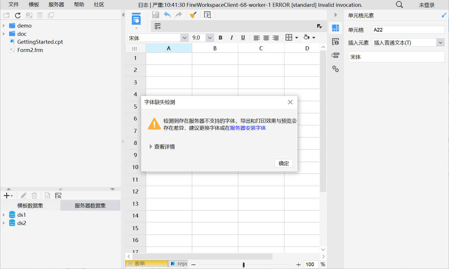 FineReport数据分析报告在预览时,中文无法正常显示。