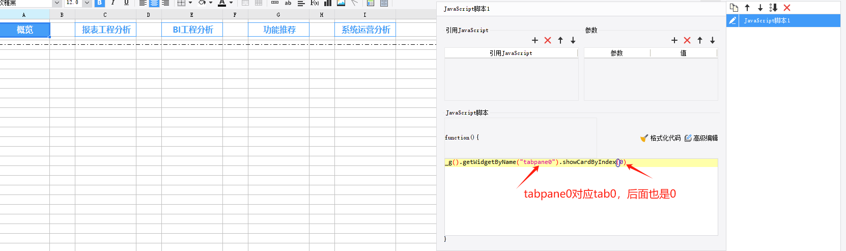 利用超级链接js脚本(_g().getWidgetByName("tabpane0").showCardByIndex(0))