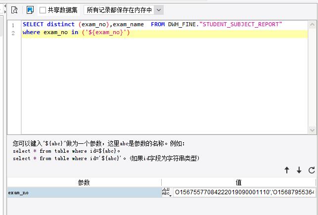 你这个弄复杂了。数据字典里面不需要再做 where 筛选了,你的图二的数据集不就已经罗列出了 exam_no ,控件直接绑定这个数据集作为数据字典就可以了。