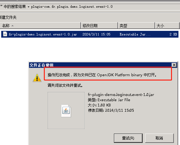 退出账号后能回到报表登录页不要到百度页面,还有删除登录插件时提示的openJDK Platform binary正在打开,无法删除是什么意思
