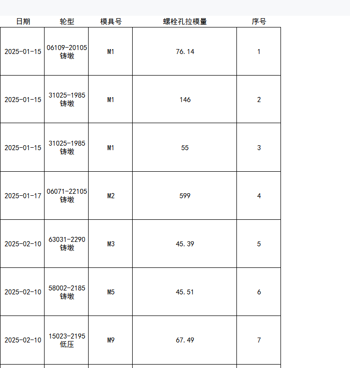 如图 图表中横坐标值是序号,纵坐标是螺栓孔拉模量 想根据不同模具号展示螺栓孔拉模量 生成不同的折线 具体应该怎么配置