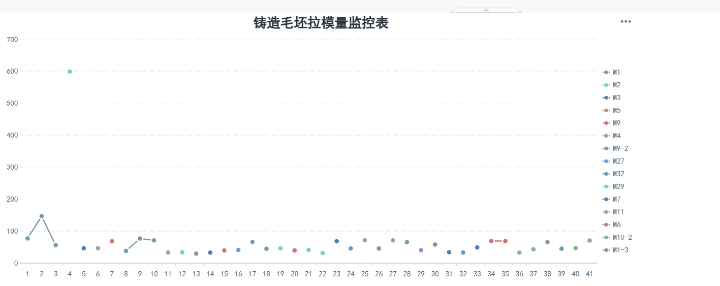 如图 怎么按照M1-Mn这种模具号 分出不同的折线 横坐标是序号 纵坐标是数值 要展示M1 M2 ... 根据序号以及纵坐标数值 分开生成不同的折线展示