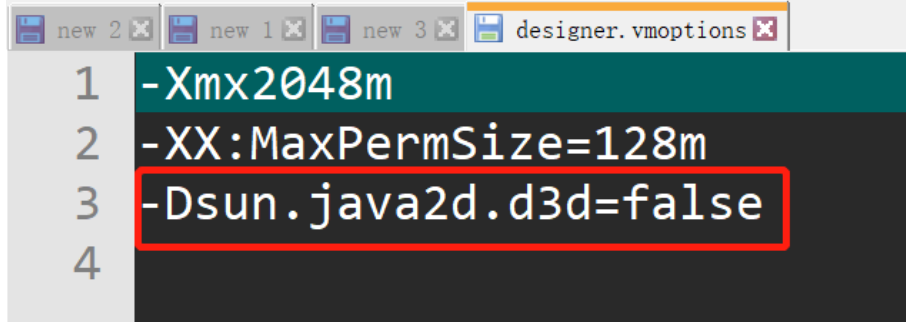 编辑文件:在 designer.vmoptions 文件中添加以下信息: