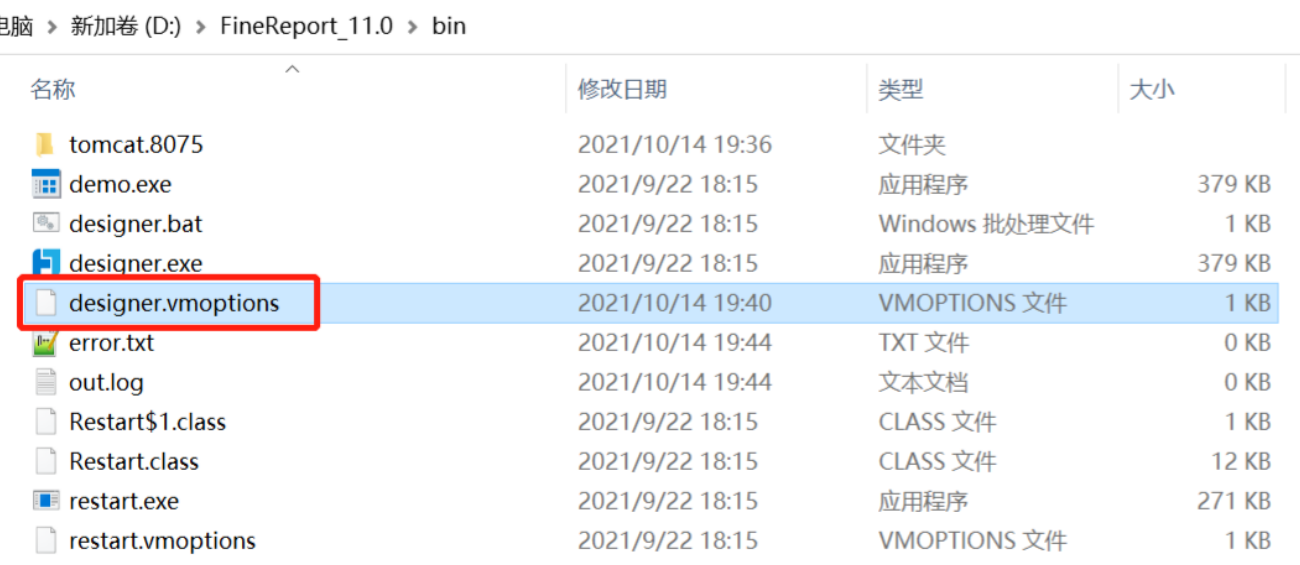 修改配置文件:进入设计器安装路径的 bin 目录,找到 designer.vmoptions 文件。