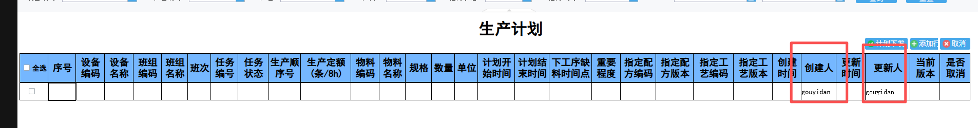 创建人:要把这个字段拖入表格隐藏起来。如果是查询出来的数据,这个值应该是有的,只有新增的时候才会给这个单元格赋值