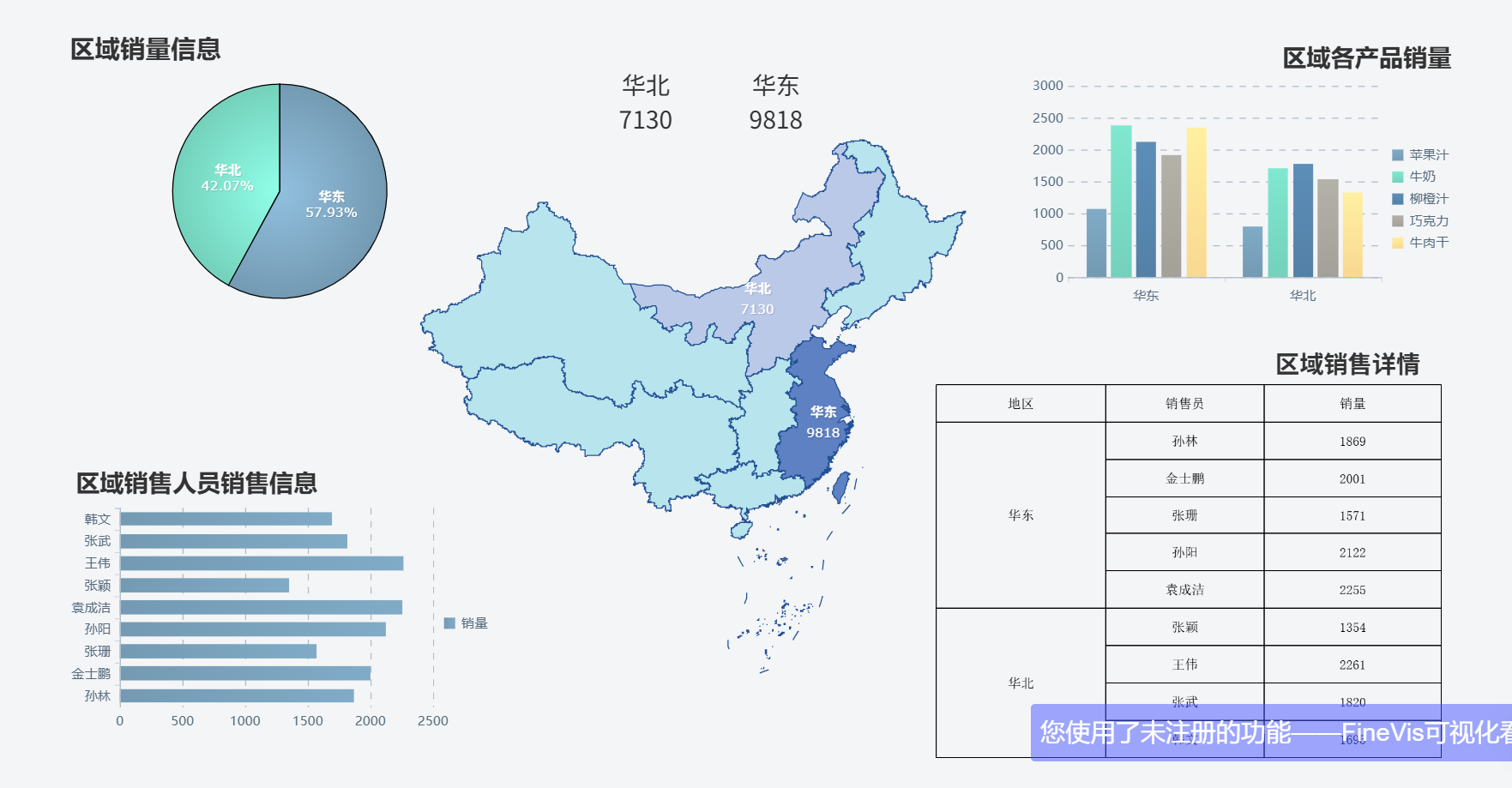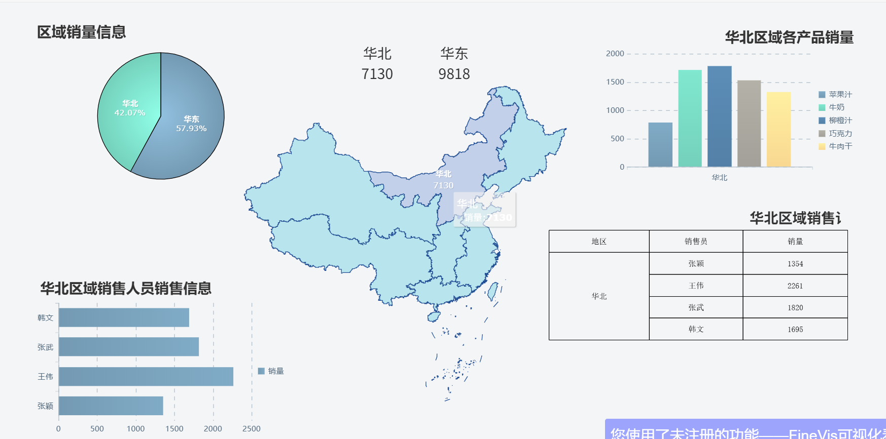 fvs交互,地图设置了组件联动,但当点击华东或华北任意一个时,再点击另外一个值就没反应了,如第二张图