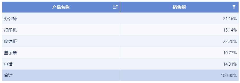 场景:先计算产品销售额占比,再筛选出占比>10%的产品。