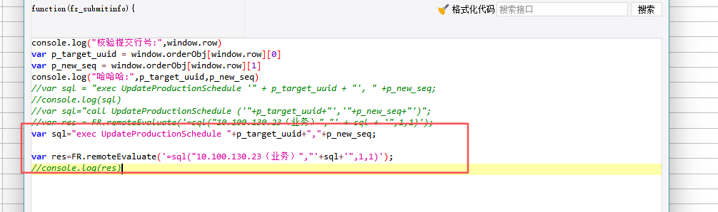 在数据库写了存储过程,用于在生产顺序号发生变化的时候,点击提交会调用存储过程把其他行的顺序号也修改了,但是在填报后、提交后写的js都没有用,已经获取到了要传的值,拼接sql也有了 但就是没调用