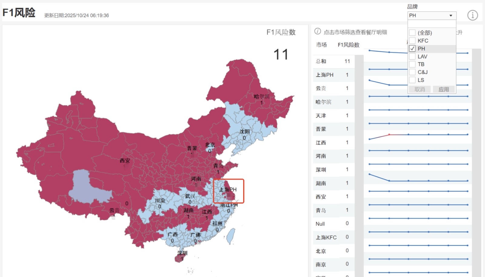 地图就会显示对应品牌的数据