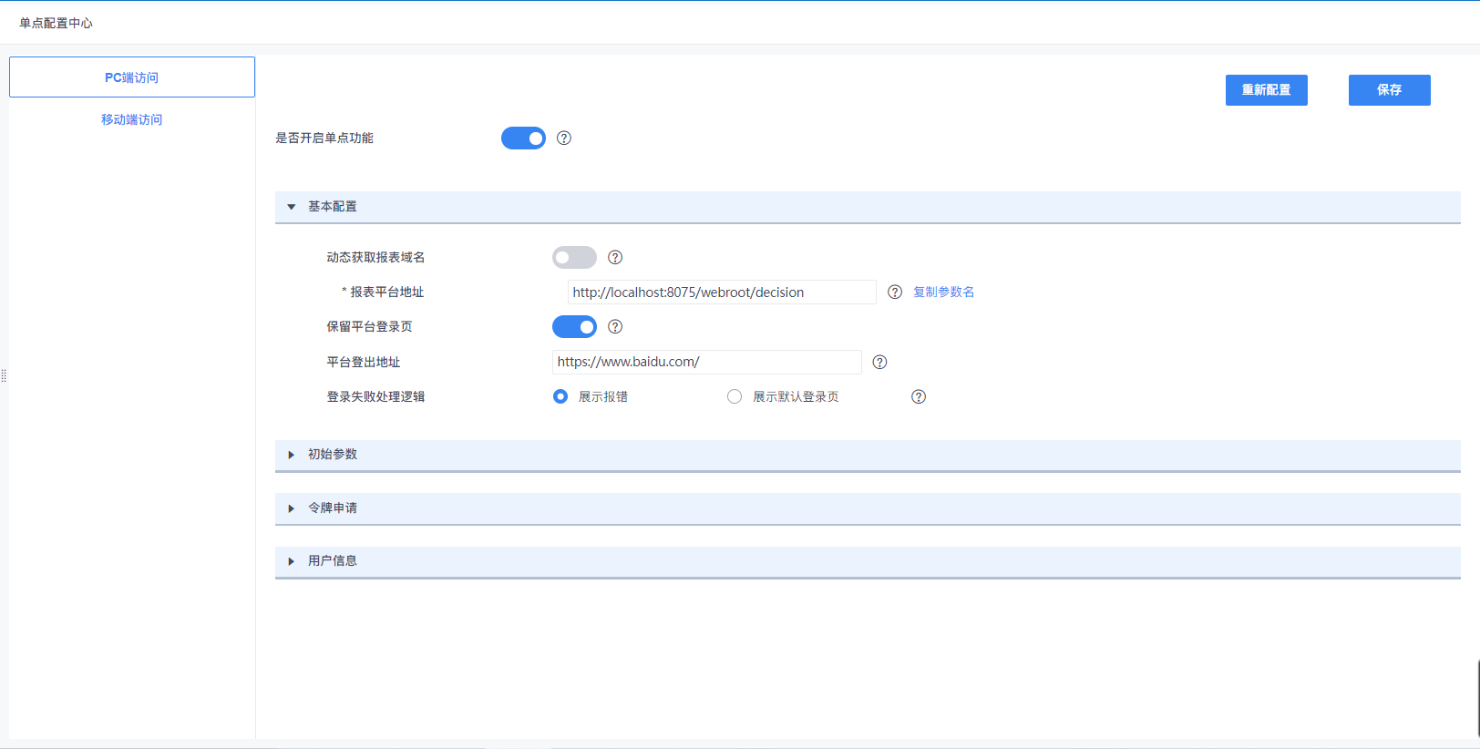 若帆软工程使用类OAuth2单点登录插件,可配置自定义认证模式: