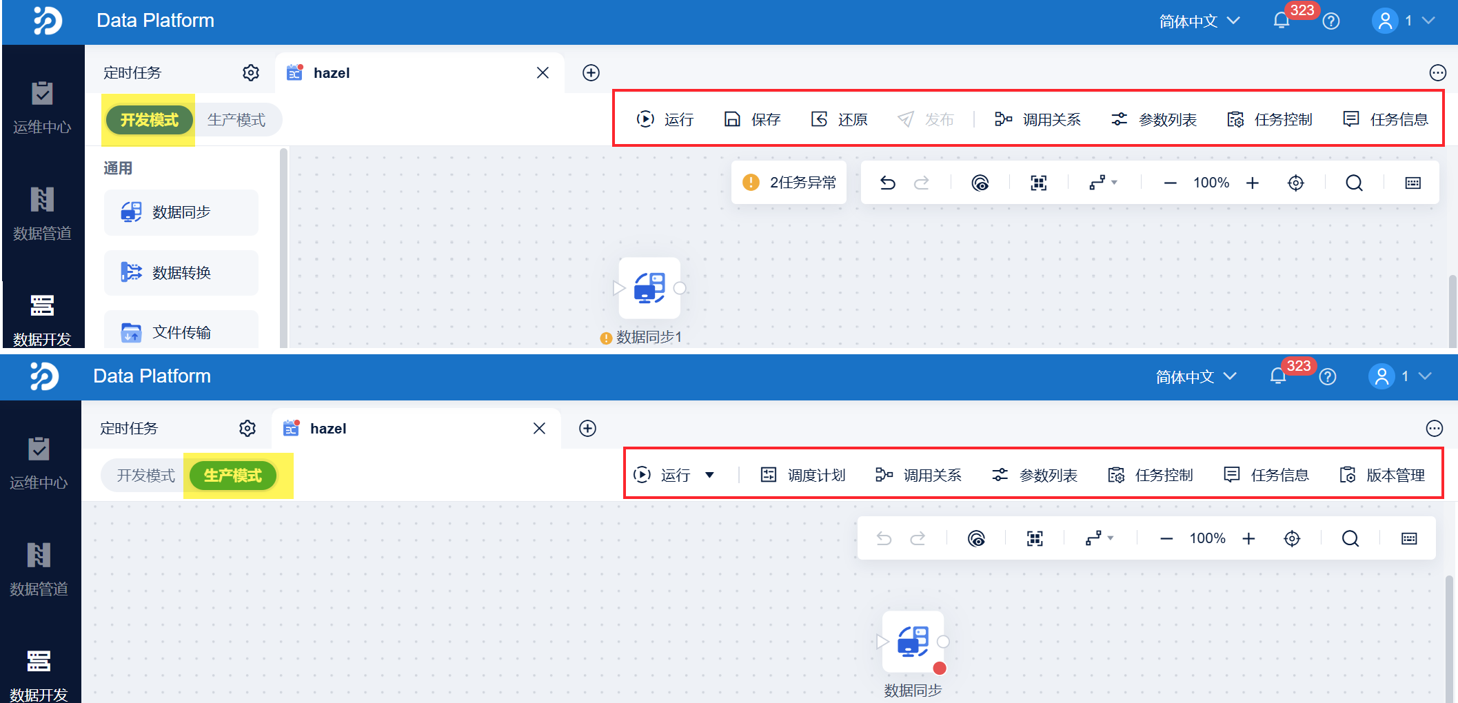 生产模式任务必须处于未运行状态(若任务正在运行,请先停止任务)。